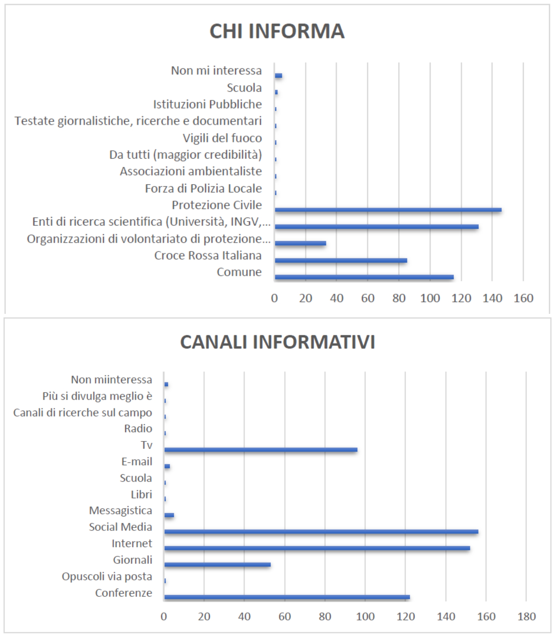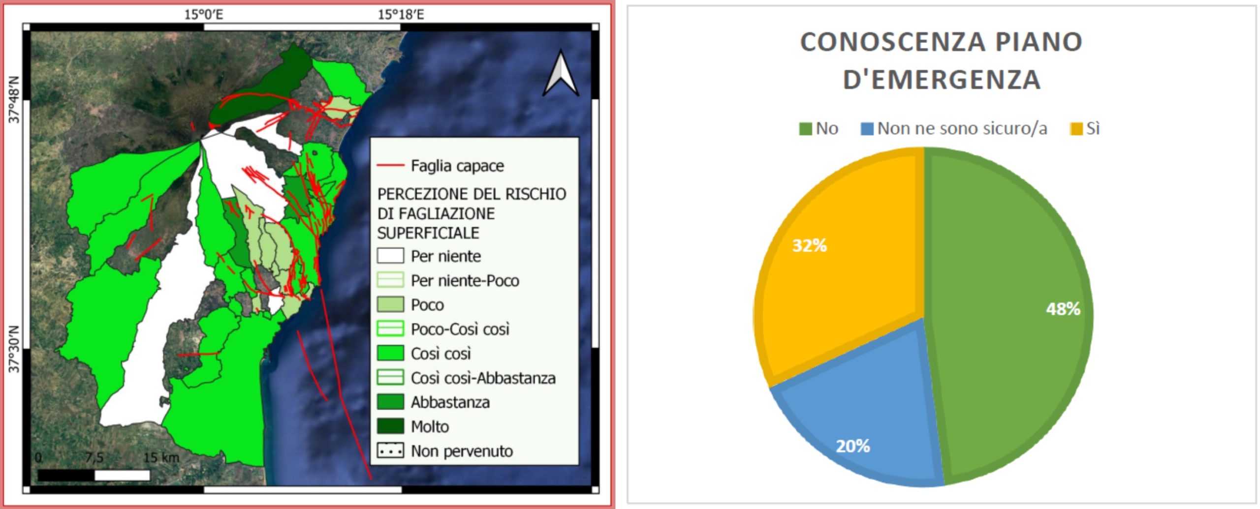 Dai risultati è emerso che la popolazione percepisce molto il rischio sismico, ma poco il rischio vulcanico e da fagliazione superficiale. Inoltre, almeno il 50% degli intervistati non conosce il piano d’emergenza comunale. La parte finale del sondaggio ha suggerito che la popolazione preferirebbe essere più informata attraverso i social, ma anche mediante conferenze.